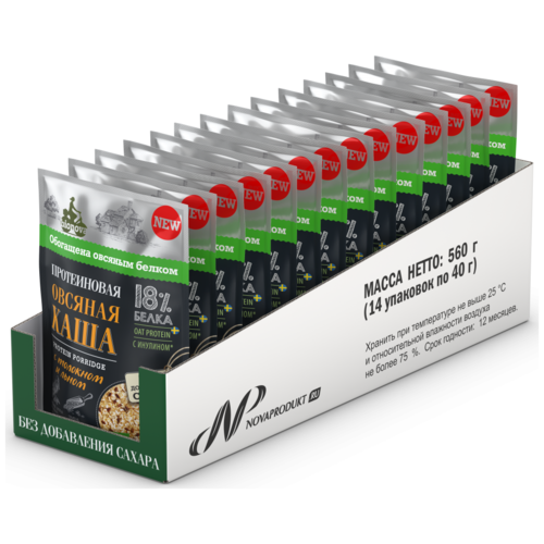 Протеиновая овсяная каша Bionova® с толокном и льном (vegan protein) 40г, 14 шт