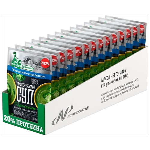 Протеиновый крем-суп с брокколи Bionova® (milk protein) 20г, 14 шт