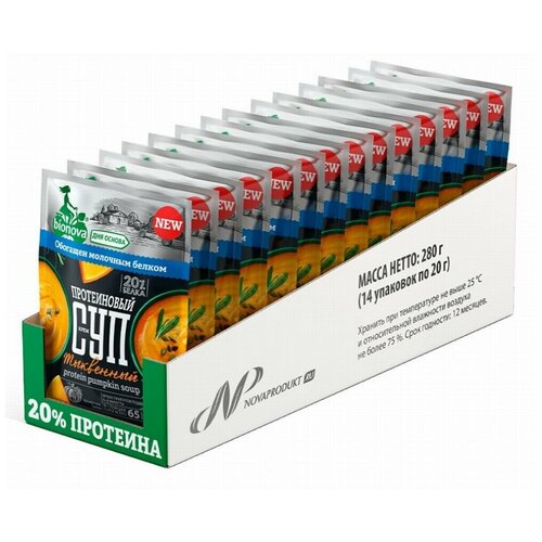 Протеиновый тыквенный крем-суп быстрого приготовления "BIONOVA", 20гр. по 14 шт