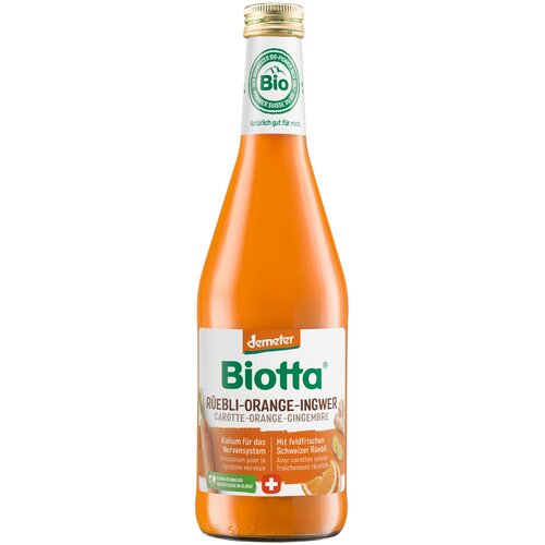 Сок Biotta (Биотта) Demeter Carrot-Orange-Ginger из смеси овощей и фруктов (морковь-апельсин-имбирь) прямого отжима, серии Деметра, Швейцария, 0.5 л