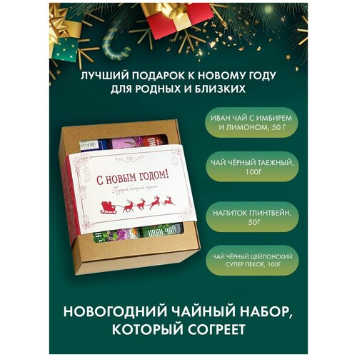 Подарочный Новогодний набор "Подарок, который согреет", 4 сорта чая в коробочках.