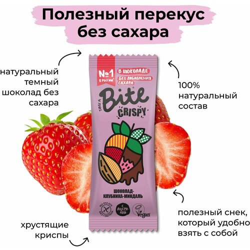 BITE Батончик Crispy в Тёмном Шоколаде Миндаль-Клубника 45гр.