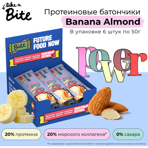 Батончик протеиновый Bite "Банан-миндаль" без сахара, пп, байт 6 штук по 50гр
