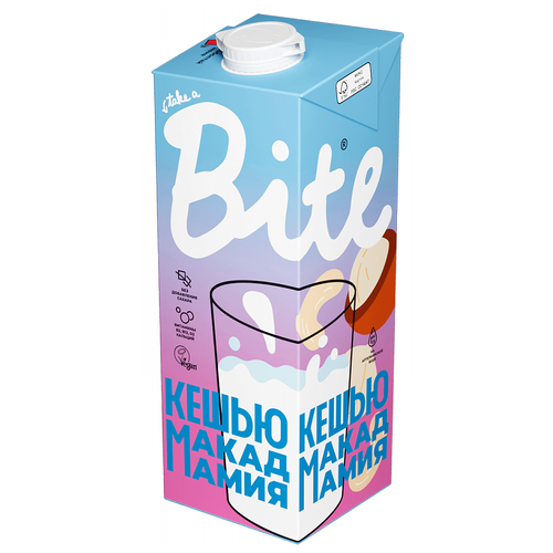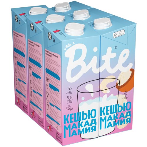 Молоко растительное Bite "Кешью-Макадамия", байт, без сахара, vegan, без лактозы, 6 штук по 1л