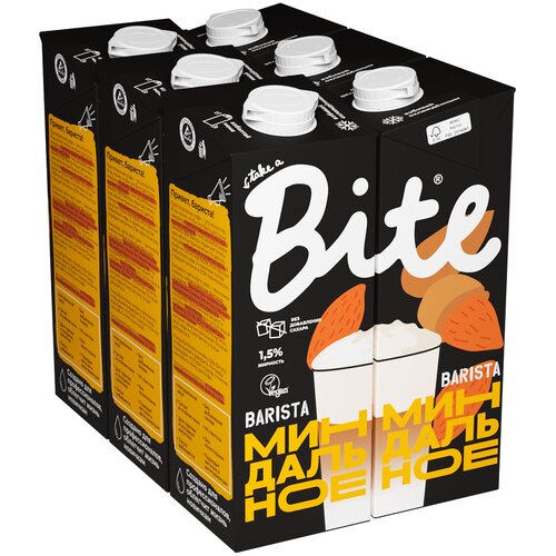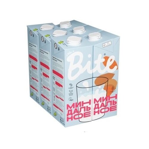 Молоко растительное Bite "Миндаль", байт, без сахара, vegan, без лактозы, 6 штук по 1л