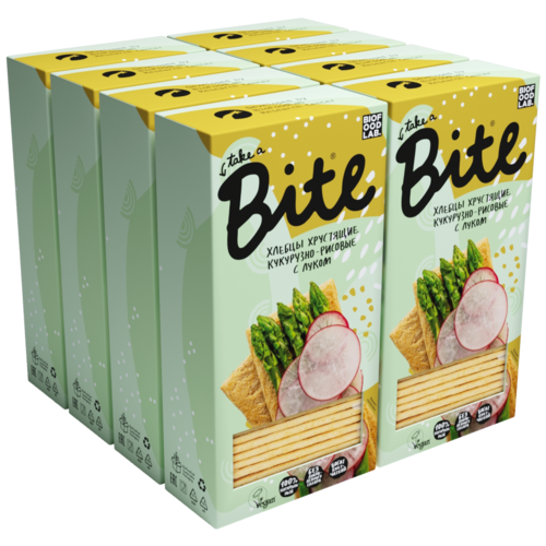 Кукурузно-рисовые хлебцы Bite с луком (без глютена) 150гр, шоубокс 8шт / Байт