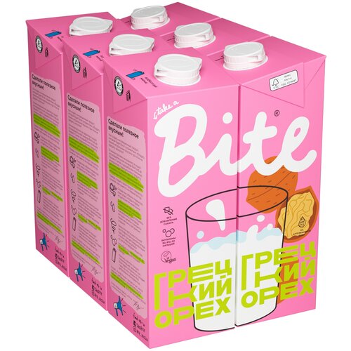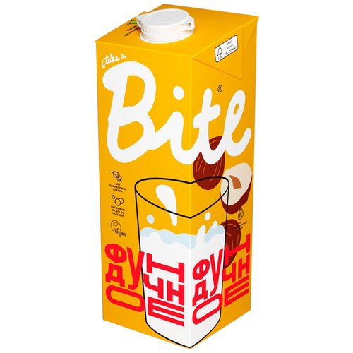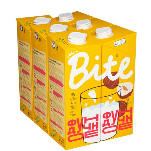 Молоко растительное Bite "Фундук", байт, без сахара, vegan, без лактозы, 6 штук по 1л