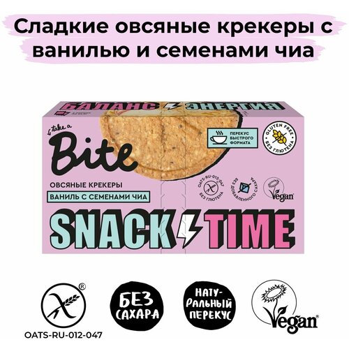 Крекеры овсяные, сладкие, со вкусом ванили и семенами чиа, 125 грамм, Bite