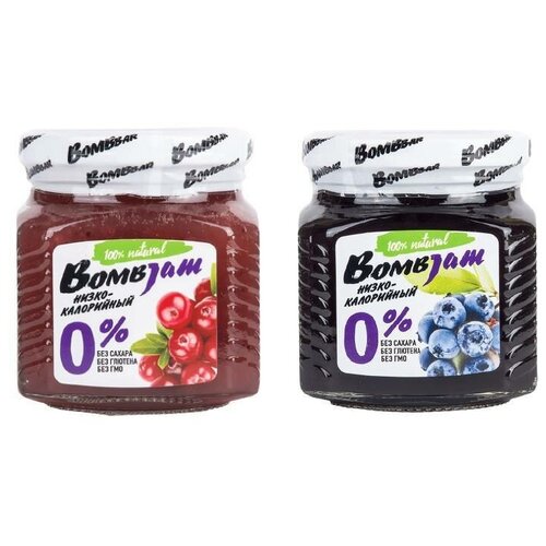 Низкокалорийный джем Bombbar 250 гр , Микс 2 шт (Брусника, Черника)
