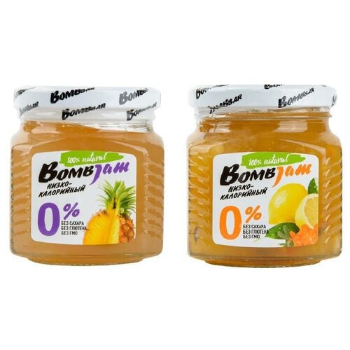 Низкокалорийный джем Bombbar 250 гр , Микс 2 шт (Ананас, Облепиха-Лимон)