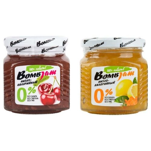 Низкокалорийный джем Bombbar 250 гр , Микс 2 шт (Вишня, Облепиха-Лимон)