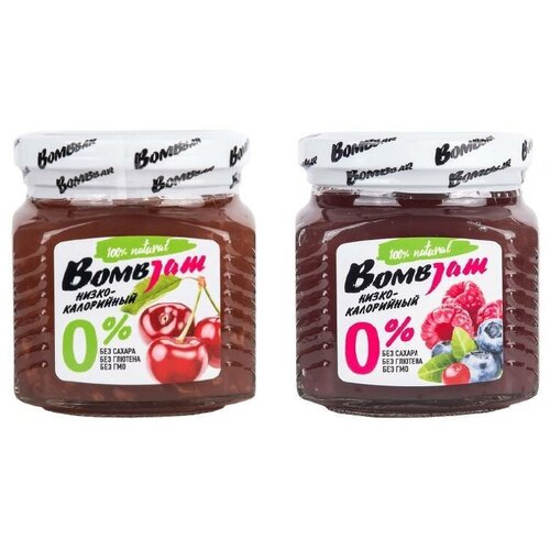 Низкокалорийный джем Bombbar 250 гр , Микс 2 шт (Вишня, Лесная ягода)
