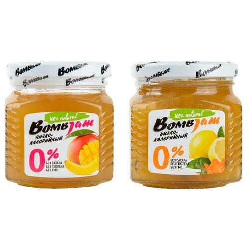 Низкокалорийный джем Bombbar 250 гр , Микс 2 шт (Манго-Банан, Облепиха-Лимон)