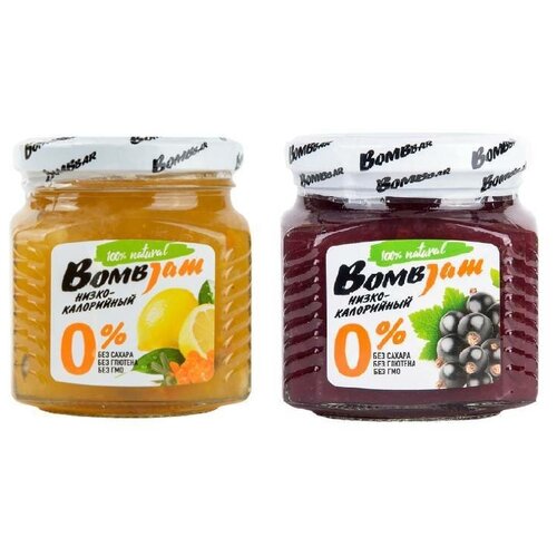 Низкокалорийный джем Bombbar 250 гр , Микс 2 шт (Облепиха-Лимон, Черная смородина)