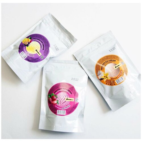Смесь для приготовления протеинового мороженого Bombbar (3 штуки) микс: клубника, манго, ваниль