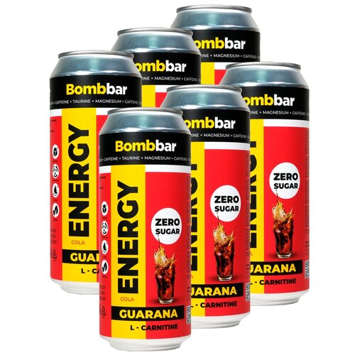 Энергетик напиток без сахара с Л-карнитином BOMBBAR ENERGY (Кола) 6шт по 500мл / С гуараной энергетический напиток