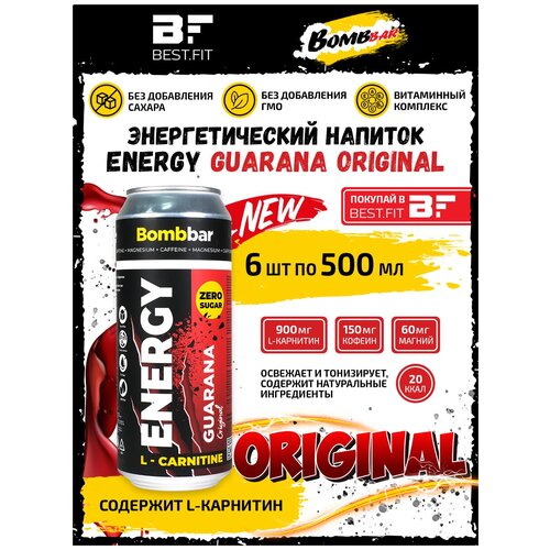 Энергетик напиток без сахара с Л-карнитином BOMBBAR ENERGY (Original) 6шт по 500мл / С гуараной энергетический напиток