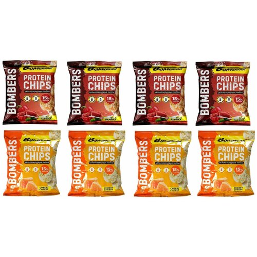 Чипсы протеиновые цельнозерновые Bombbar BOMBERS Ассорти: Бекон с паприкой, Нежный сыр 50 гр (8 шт)