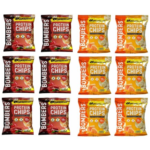 Чипсы протеиновые цельнозерновые Bombbar BOMBERS Ассорти: Бекон с паприкой, Нежный сыр 50 гр (12 шт)