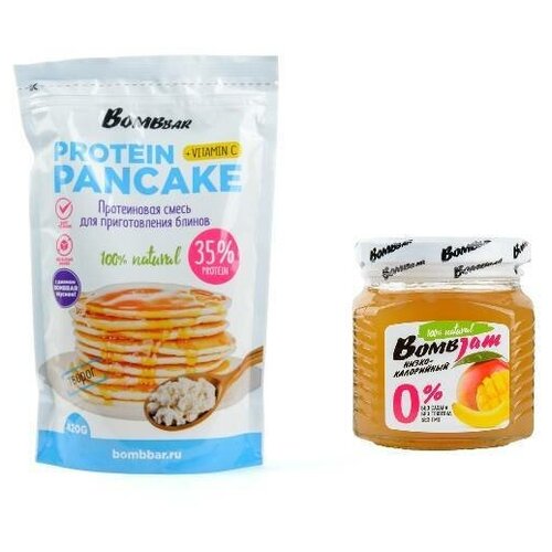 Микс для завтрака BOMBBAR: смесь для приготовления блинов и панкейков с творогом, джем Манго-банан
