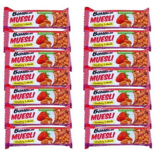 Мюсли-батончики Bombbar (45гр), Мультизлаковый Клубника, 14 шт
