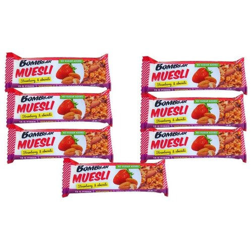 Мюсли-батончики Bombbar (45гр), Мультизлаковый Клубника, 7 шт