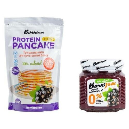 Микс для завтрака BOMBBAR: смесь для приготовления блинов и панкейков с черной смородиной, джем черная смородина