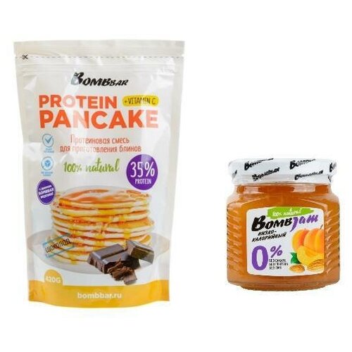 Микс для завтрака BOMBBAR: смесь для приготовления блинов и панкейков с шоколадом, джем Абрикос