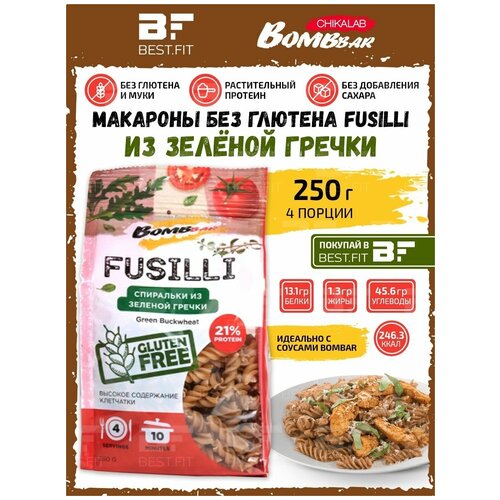 Макароны без глютена Fusilli Bombbar из зеленой гречки (250 гр) 1 шт