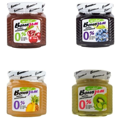 Низкокалорийный джем Bombbar , Микс 4 шт (Вишня, Черника-голубика, Ананас, Киви-крыжовник)