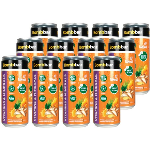 Напиток Bombbar безалкогольный газированный обогащённый "Лимонад со вкусом имбиря и лемонграсса" 0.33 л, 12 шт.