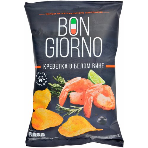 Чипсы из натурального картофеля BON GIORNO со вкусом "Креветка в белом вине", 80 г