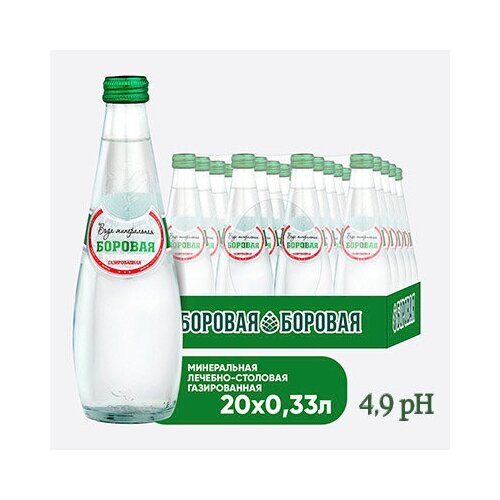Вода питьевая BOROVAYA (Боровая), природная газированная, стекло 0.33 л х 20 шт