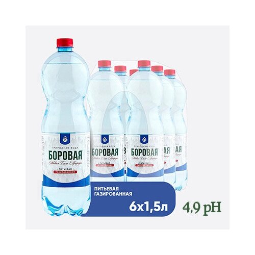 Вода питьевая BOROVAYA (Боровая), природная газированная, пэт 1.5 л х 6 шт