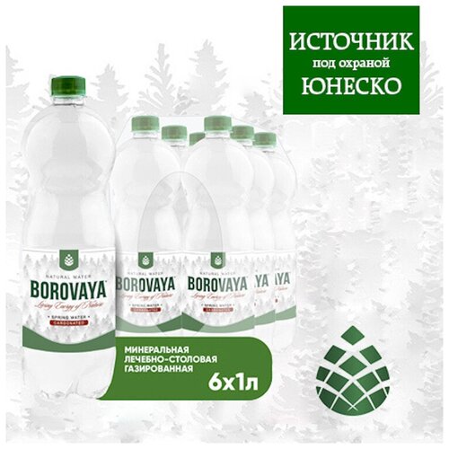 Вода BOROVAYA (Боровая), питьевая природная газированная, пэт 1 л х 6 шт