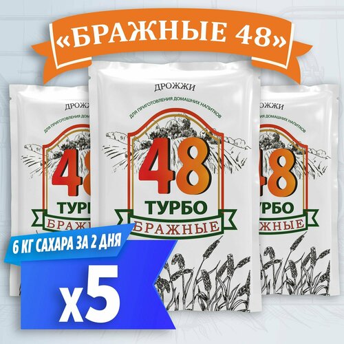 Турбо дрожжи для самогона Бражные 48, 5 x 130 г (5 пачек в комплекте)