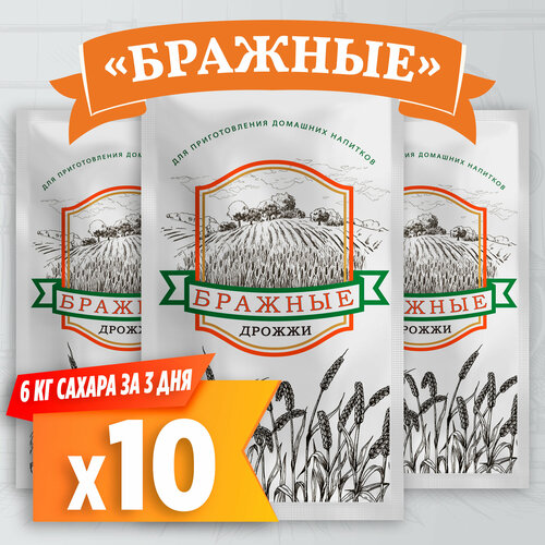 Спиртовые дрожжи для самогона Бражные, 10 x 100 г (10 пачек в комплекте)