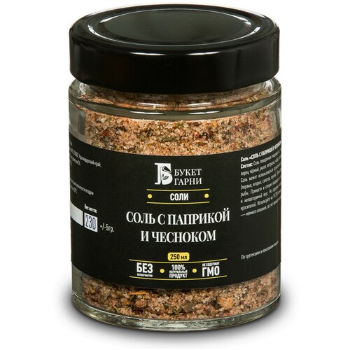 "Соль с паприкой и чесноком" — Авторская соль с пряностями и специями Букет Гарни, 250мл стекло