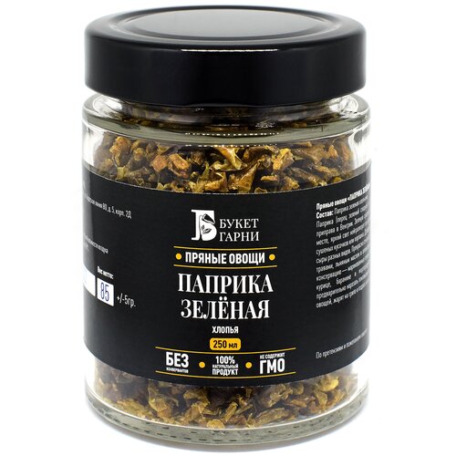 Паприка зеленая кусочками/Перец сладкий зеленый хлопьями 3*3, Букет Гарни, 250мл стекло, Китай