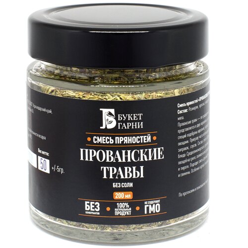 Приправа "прованские травы" без соли Букет Гарни, 200мл стекло