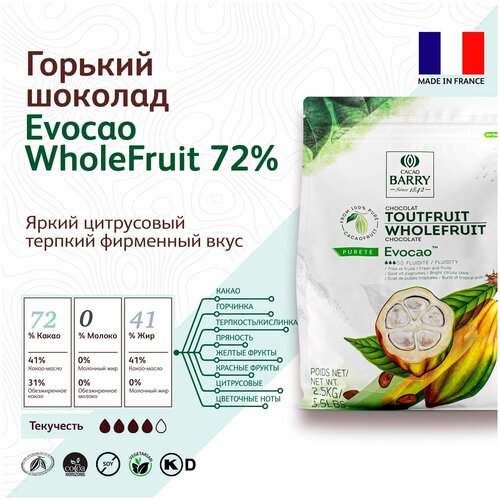Темный шоколадный кувертюр Cacao Barry Evocao Wholefruit 72%, 2,5 кг, Франция CWD-Q1EVOC-U75