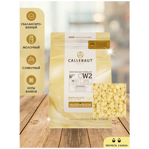 Шоколад Callebaut CW2 белый молочно-сливочный 25,9% какао. Заводская упаковка 2,5 кг.
