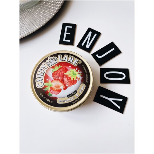 Фруктовые леденцы монпансье CANDY LANE в жестяной банке, клубника со сливками 200г