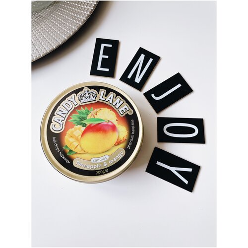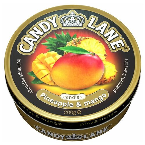 Фруктовые леденцы монпансье CANDY LANE в жестяной банке, ананас и манго 200г