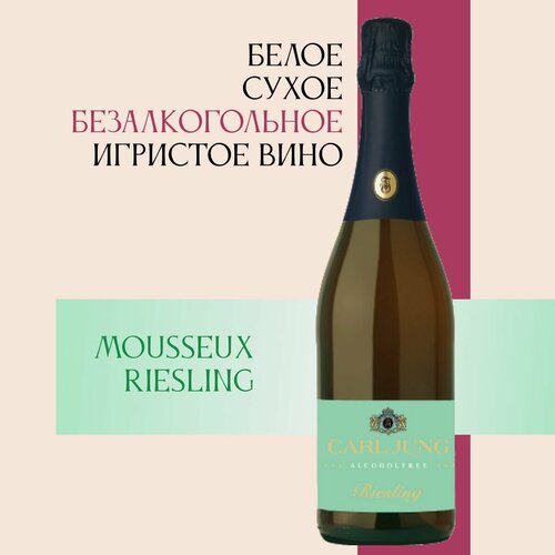 Вино игристое безалкогольное Carl Jung (Карл Юнг) MOUSSEUX RIESLING (Рислинг) 100% шампанское натуральное белое сухое /в подарок, Германия, 750 мл