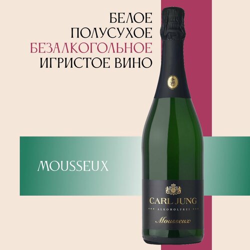 Вино игристое безалкогольное Carl Jung (Карл Юнг) Mousseux (Мусё) 100% шампанское натуральное белое полусухое /в подарок, Германия, 750 мл