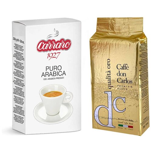 Кофе молотый Don Carlos Qualita Oro 250 гр в/у + Carraro Arabica 100% 250 гр в/у