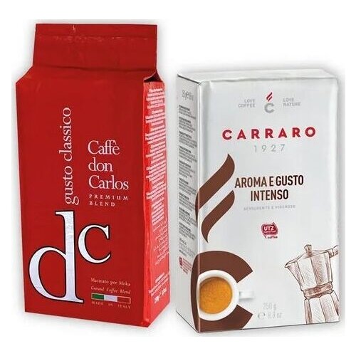 Кофе молотый Don Carlos gusto classico 250 гр в/у + Carraro Aroma e Gusto Intenso 250 гр в/у