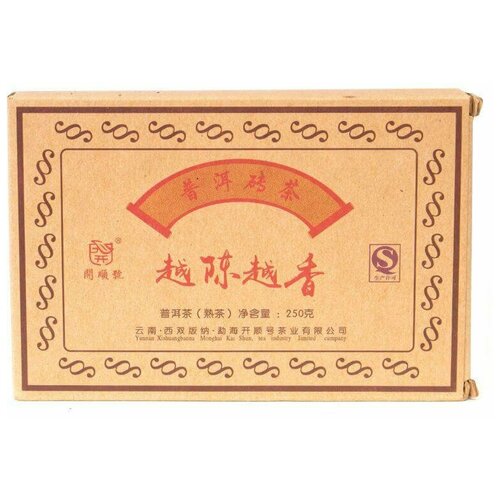 Шу пуэр 2014 г. «Чем старше, тем ароматнее» марки «Кайшуньхао» кирпич 250 г