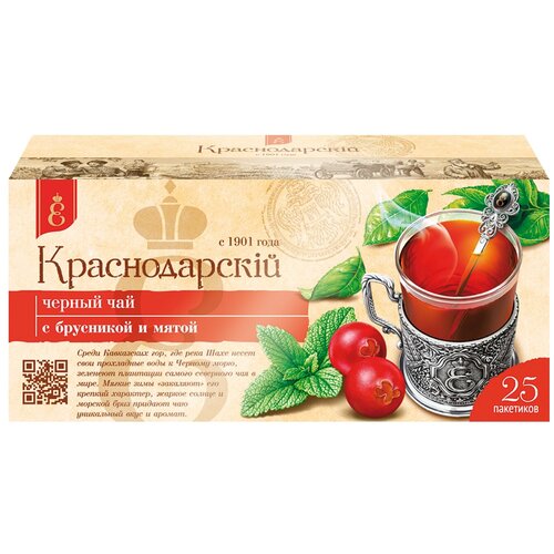 Чай черный с брусникой и мятой пакетированный, Краснодарский чай века, (25 шт.)